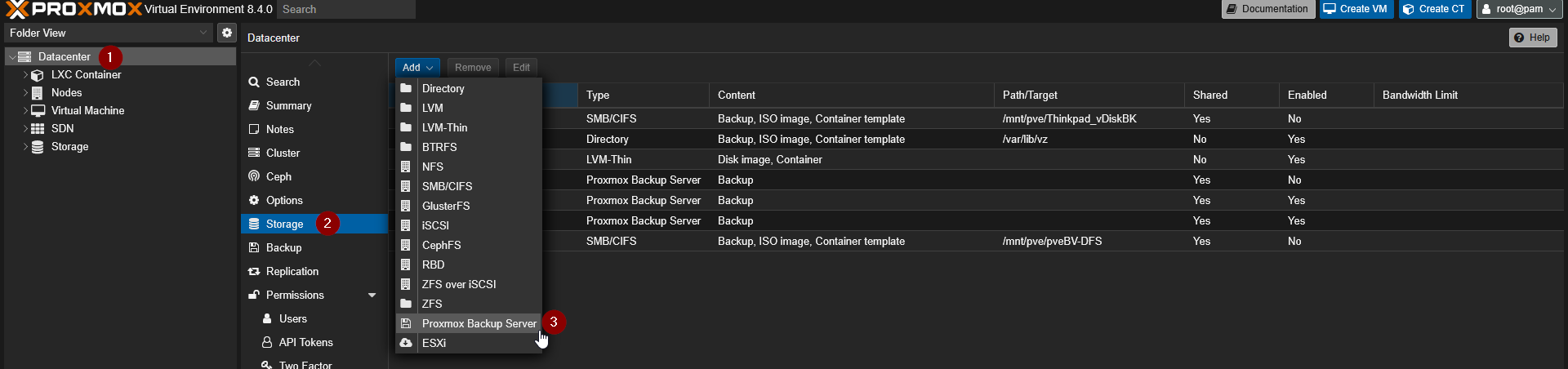 Bước 4.2: Thêm PBS Storage vào Proxmox VE