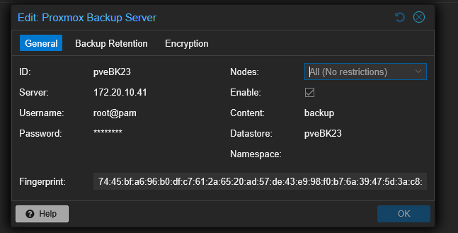 - Username: User bạn vừa tạo (pve-backup@pbs)