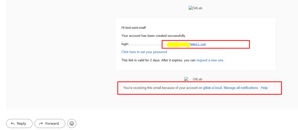 Hên quá. có mail về rồi. bạn nhấn vào Click here to set your password trong mail để redirect đến trang gitlab và set mật khẩu nhé